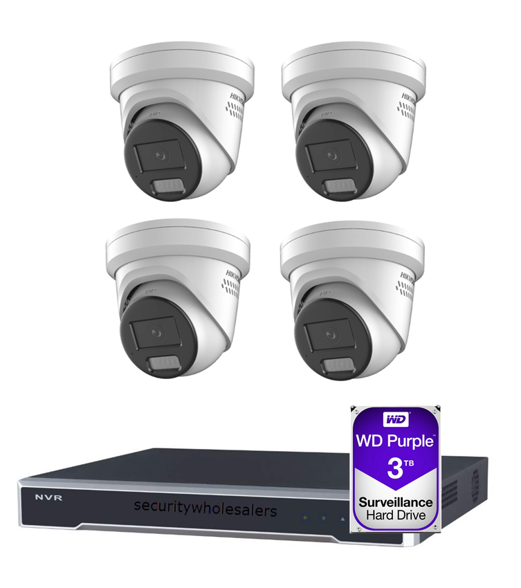 A 4MP Hikvision ColorVu LiveGuard Kit is an “active response” system. While the previous kits we discussed focus on capturing high-quality evidence, the LiveGuard series is designed to stop a crime while it is happening by using light and sound to scare away intruders.
