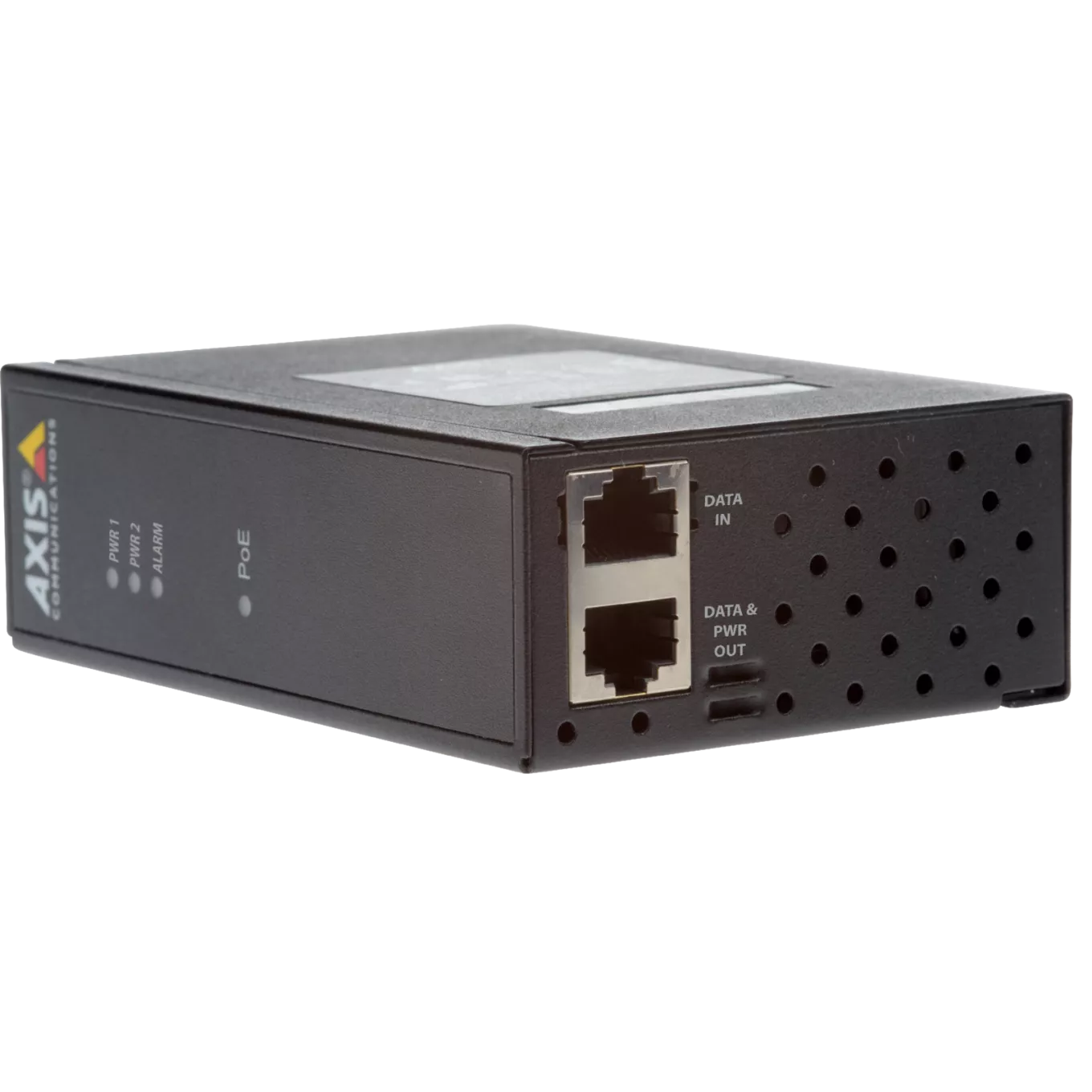 The AXIS T8144 is ideal for mounting in cabinets or on DIN rail, has dual DC inputs for power redundancy and supports all PoE devices.