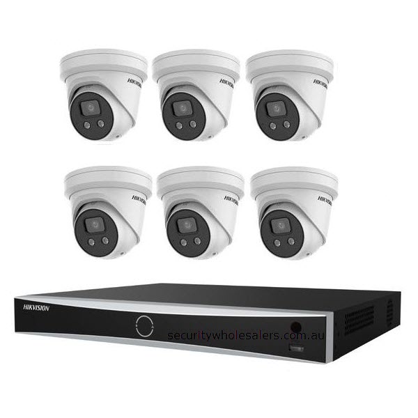 6 x 8 MP Hikvision ACUSENSE Outdoor Turret Cameras with Strobe and; Siren
