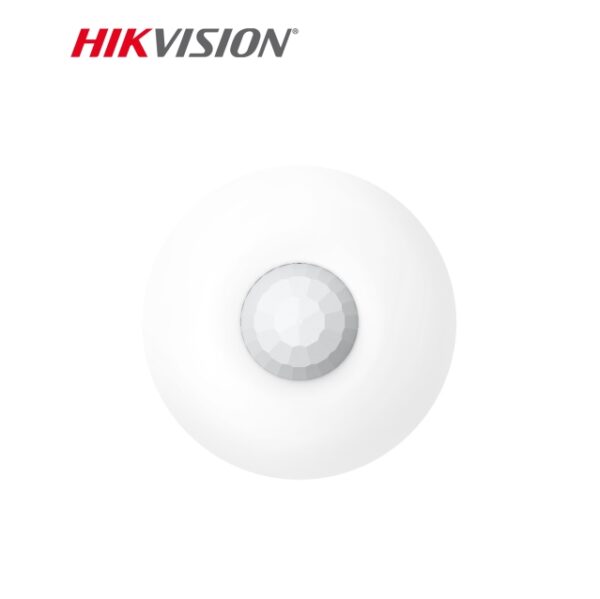 The Hikvision 360-degree PIR detector has two-way wireless communication featuring tamper protection, low battery, and RF supervision. It has a 12m range and is fully remote configurable through the Hik-Connect app.