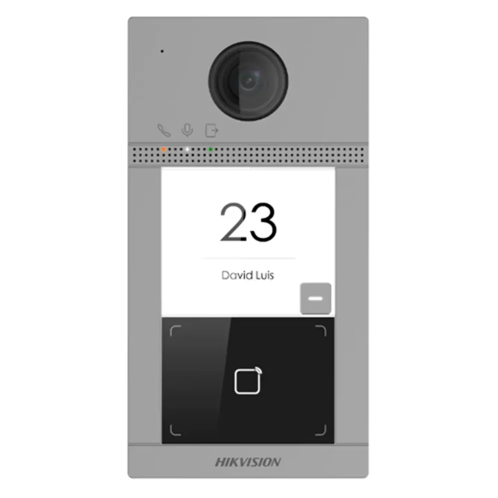 The Hikvision DS-KV8213-WME1 is a versatile, second-generation (Gen2) IP video intercom “villa” door station. It is specifically designed for properties that need to manage two distinct entry points or reach two different locations (e.g., a main house and a detached guest house/apartment) from a single entrance.