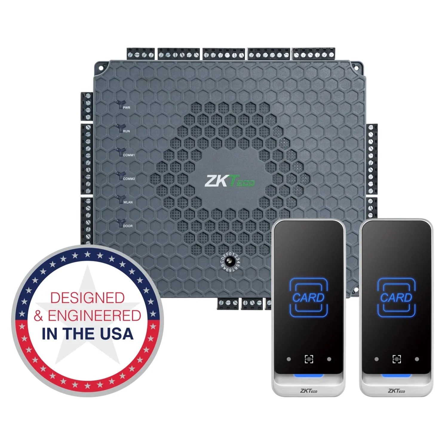 Choice of Readers – supports ZKTeco FR1500A fingerprint readers and additionally any 3rd-party readers with Wiegand or OSDP communication protocols.