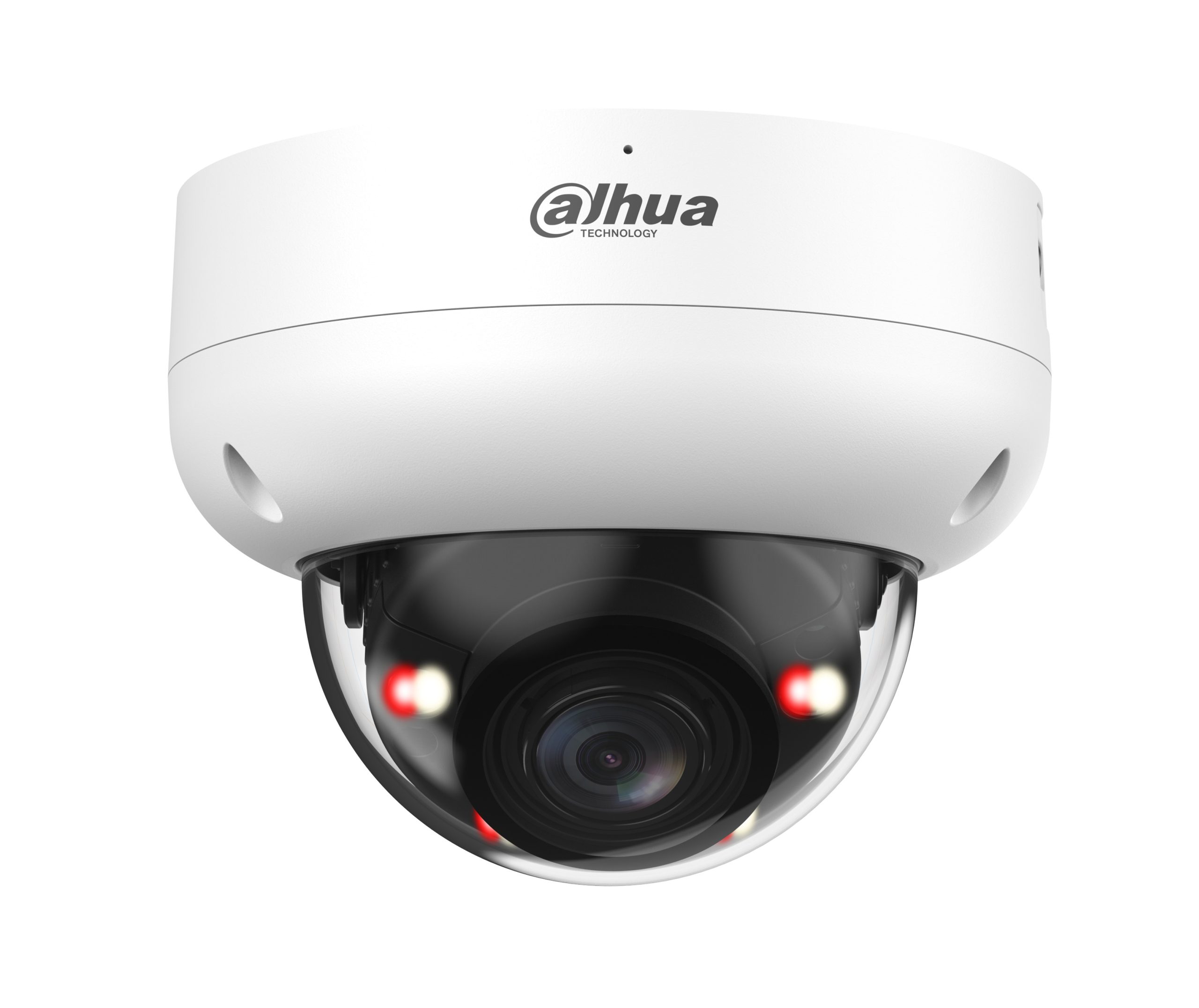 8-megapixel (4K) dome network camera with motorised vari-focal lens, dual light (warm & IR) for colour or black & white at night, high sensitivity, advanced AI functions (people/vehicle classification, perimeter protection), rugged IP67 / IK10 casing, and wide environmental tolerance. DHU7589_DH-IPC-HDBW3867R-ZAS-IL-ANZ-BLK_family-datasheet_1