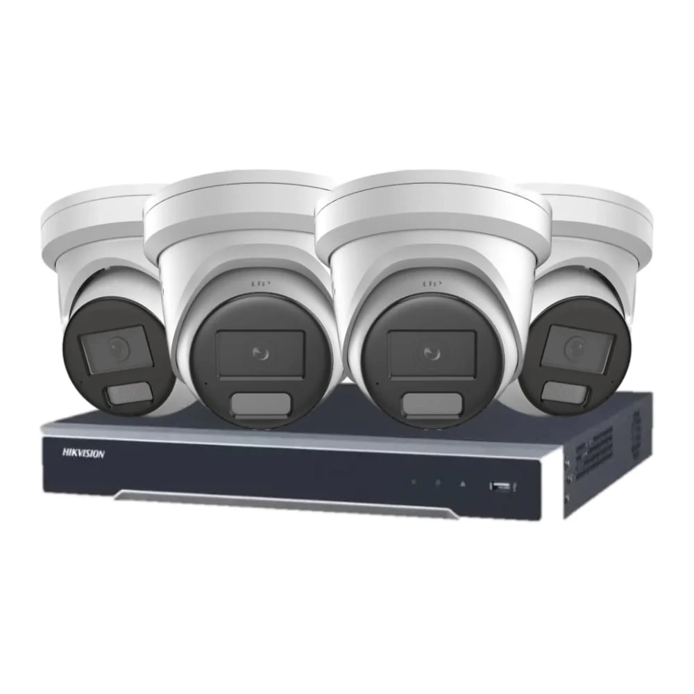 This Hikvision kit combines four 6MP AcuSense ColorVu turret cameras equipped with strobe light, speaker, and two-way audio for active deterrence, along with a 4-channel PoE NVR for reliable recording and management. Featuring 130 dB WDR technology, advanced motion detection, and IP67 weatherproofing, this kit ensures effective day and night surveillance. The NVR provides seamless plug-and-play integration, 4K HDMI/VGA output, and scalability for small to medium installations.